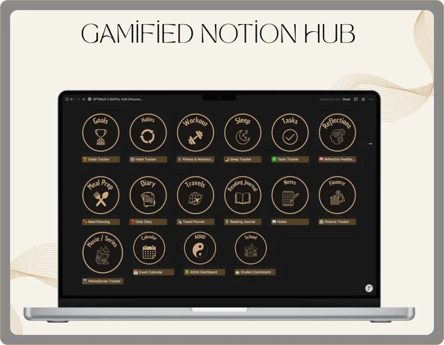 Boost your focus by up to 40% in just 3 days with OptimusX. The most advanced, fully gamified Notion system designed for ADHD minds, students, and high-achievers who want organization to feel effortless (and even addictive).