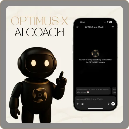 Boost motivation, maximize productivity, and stay on track your custom OPTIMUS X AI Coach