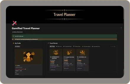 Organize trips, track bookings, and create itineraries all while earning XP for every adventure inside Optimus X.