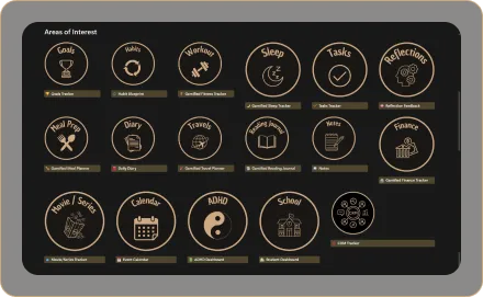 One dashboard for everything tasks, goals, finances, habits, travel, meals all linked together so nothing gets lost and every win counts.