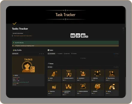 The fully connected, gamified Notion dashboard with 17+ integrated templates for every area of your life.